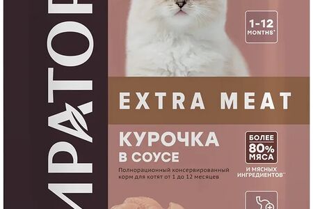 Корм консервированный для котят от 1 до 12 месяцев с курочкой в соусе Мираторг Extra Meat доставка