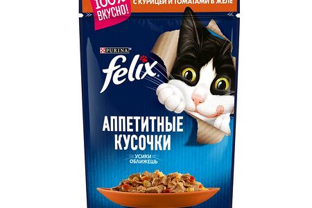 Влажный корм для кошек Felix Аппетитные кусочки в желе с курицей и томатами доставка