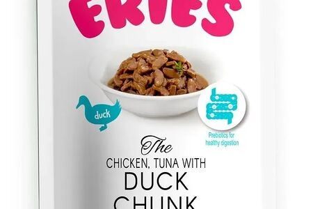 Влажный корм Pettric ERIES для любых кошек Утка с курицей и тунцом, кусочки в соусе 85г доставка