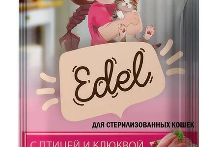 Паучи Edel для стерилизованных кошек и котят, нежные кусочки в соусе, с птицей и клюквой, полнорационный 85гр доставка