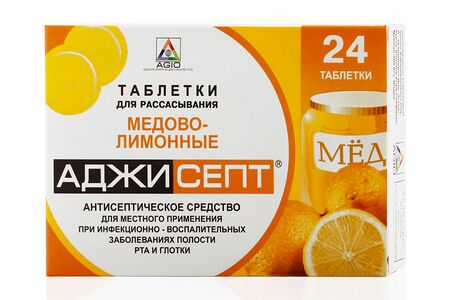 Аджисепт 24 шт таблетки для рассасывания со вкусом мёда и лимона доставка