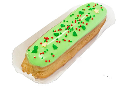 Заварная трубочка с нежной начинкой из сливок и фисташковой пастой с добавлением пралине и коньяка, покрытая зеленой глазурью.