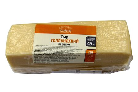 Твёрдый сыр с легкой кислинкой. Светло-желтый цвет, пластичная текстура. Жирность - 45 . Поверхность сыра была слегка влажной, что говорит о хорошем качестве продукта.
