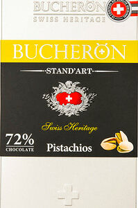 Горький шоколад Bucheron Stand Art с насыщенным вкусом, тающий во рту, дополнен нежными ядрышками фисташек. Создан по традиционной швейцарской рецептуре и вкусно дополнит чашечку ароматного чая.