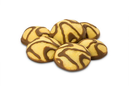 Нежное песочное печенье Лукошко с малиновым джемом, украшенное шоколадной глазурью,