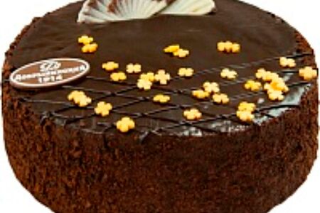 Оригинальное сочетание шоколадных слоев бисквита на сгущенном молоке с сахарным сиропом и кремом Пражский . Поверхность покрыта яблочным повидлом и шоколадным ганашом, украшена рисунком из крема, фигурками и рисунком из белой кондитерской глазури. Боковая поверхность обсыпана шоколадной крупкой.