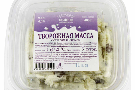 только натуральные ингредиенты: отборный творог, изюм, ванилин и сахар. Она имеет нежный сливочно-ванильный вкус, в котором ощущается яркая кислинка изюма.