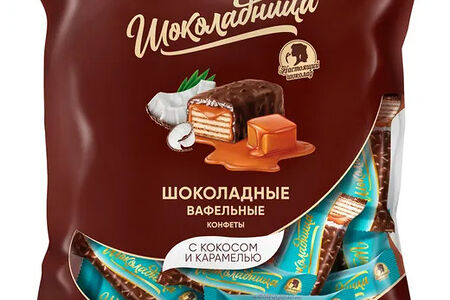 Конфеты вафельные шоколадные с кокосом и карамелью Шоколадница 200г доставка