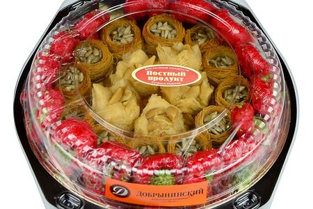 Набор разных видов сладостей из двух видов теста: слоенного и теста катаифи в виде тонкой лапши с наполнением из цельного и дробленного арахиса, пропитанных сахарным сиропом. Особенность изделиям придает то, что при употреблении во рту, тесто тает слой за слоем, наполняя рецепторы неповторимым вкусом. Восточные сладости, изготовленные с соблюдением всех традиционных технологий востока.