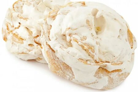 Воздушное сметанное тесто, покрыто безе с добавлением изюма. Хрустящее снаружи и мягкое внутри.
