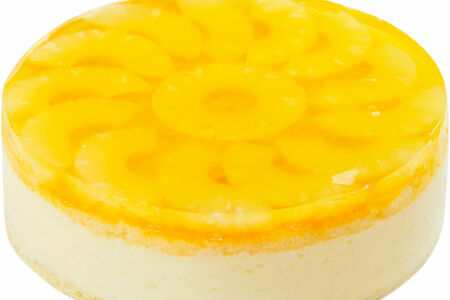 Суфле с абрикосовым повидлом, нежным желе и колечками ананаса на воздушной бисквтной основе