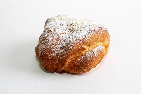 Традиционное изделие в форме квадратного конверта с начинкой из творога и лимона, посыпанное сахарной пудрой