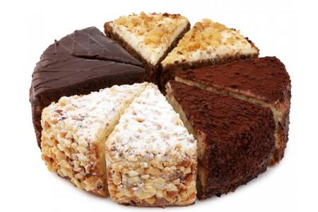 Торт состоит из: торт Подарочный 2 порции; торт Пражский 2 порции; торт Тайный вечер 2 порции; торт Пряный Морковный 2 порции