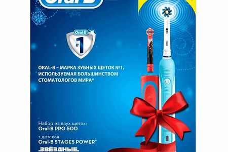 Набор электрических зубных щеток Oral-B 2 шт Pro 500 + детская Stages Power Звездные войны доставка