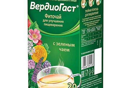 Вердиогаст для улучшения пищеварения 20 шт фильтр-пакеты с зеленым чаем доставка