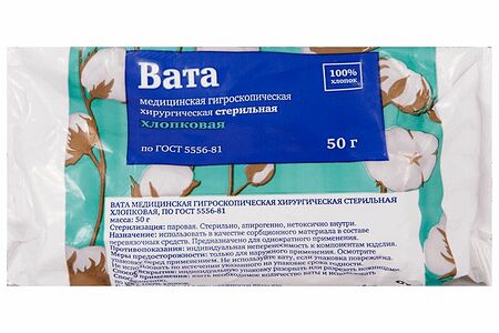 Вата 50 г стерильная хлопковая доставка