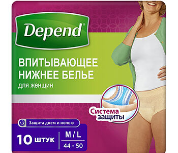 Впитывающее нижнее белье Depend 10 шт размер M/L впитываемость 7 доставка