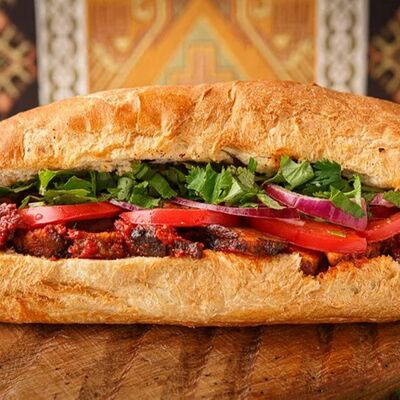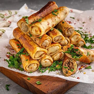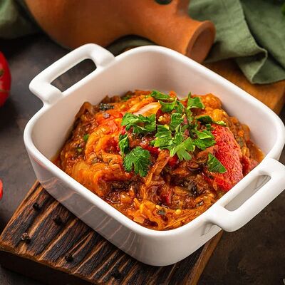 Баранина, рис, лук, специи, винoградный лист, мацони, кинза, чеснок. Подается с фирменным соусом и лавашом (7 шт.)