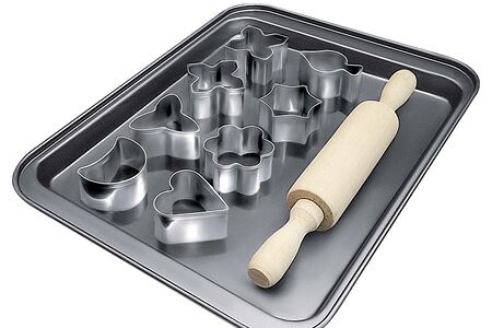 Набор для выпечки Linea Easy «Начинающий кулинар» рекомендуется для пряничного и песочного теста. В набор входят противень, фигурные формы для вырезки и скалка. Равномерное и быстрое прогревание способствует лучшему пропеканию пищи. Благодаря высокой прочности набор прослужит долго.