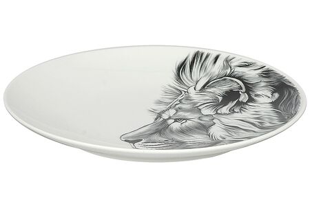 Обеденная тарелка Лев изготовлена из фарфора и предназначена для вторых блюд. Декорирована тарелка контрастным рисунком льва. Такая тарелка станет изюминкой сервировки обеденного или праздничного стола.