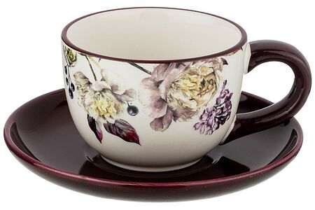 Чайная пара Пурпур изготовлена из керамики. С её помощью вы сможете провести полноценное семейное чаепитие, сохраняя единый стиль в сервировке — посуде и приборах. Чайная пара Пурпур декорирована ярким цветочным декором.