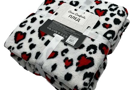 Плед Casa Conforte Kamelia Leo love, 180х200 см, микрофибра, белый/черный доставка