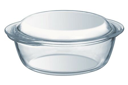 Круглая кастрюля изготовлена из закаленного боросиликатного стекла, которое является безопасным и гигиеничным материалом, не впитывающим запахи и жиры. Крышку кастрюли можно также использовать как самостоятельную форму для запекания.