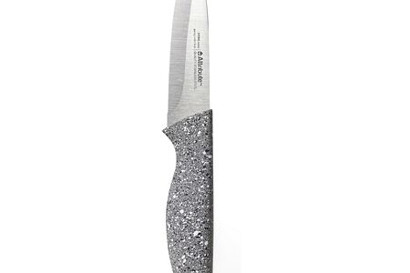 Особая заточка ножа позволяет лезвию оставаться острым долгое время. Эргономичная ручка ножа изготовлена из высококачественного пластика, а рисунок ручки имитирует текстуру камня и его вид.