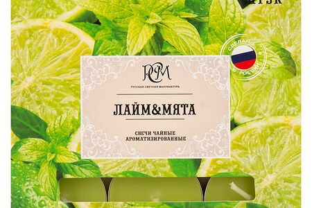 Набор чайных свечей РСМ Лайм и мята, 9 шт, парафин, 3-4 часа горения доставка