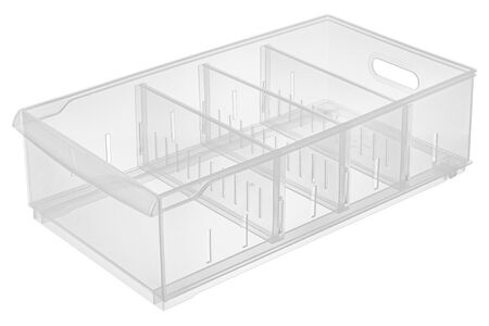 С помощью нескольких перегородок, которые идут в комплекте, и специальных пазов можно менять размер отделений контейнера по необходимости, приспособив как для мелочей, так и для крупных предметов. Прозрачные стенки позволяют видеть, что хранится внутри каждого из контейнеров.