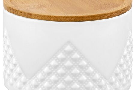 Банка для хранения Ромбики поможет удобно организовать хранение приправ, чая, кофе, сахара и самых разных сыпучих продуктов, круп и специй. Банка выполнена из высококачественного белого фарфора и украшена рельефными узорами.