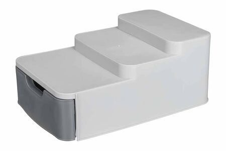 Многоуровневый органайзер Econova идеально подходит для небольших кухонных шкафов. Он изготовлен из прочного пластика и способен выдерживать вес жестяных и стеклянных банок. В нижней части органайзера есть выдвижной ящик, в котором можно хранить столовые приборы и другие кухонные аксессуары.