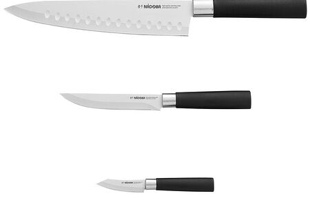 Ножи Nadoba Keiko выполнены из нержавеющей стали, а ручки — из высокопрочного пластика. Лезвия ножей остаются острыми долгое время. Пластиковые волокна не тупят ножи и легко моются.