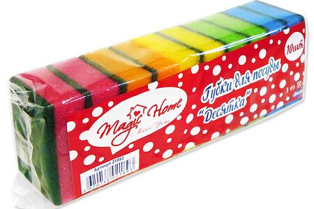 Губки Magic Home предназначены для мытья посуды, чистки раковин, плит и других рабочих поверхностей. Жесткий слой губки используется для удаления особо сильных загрязнений. Не требуют специальных условий хранения. Долговечны в использовании.