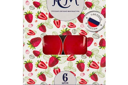 Набор чайных свечей РСМ Клубника, 6 шт, парафин, 3-4 часа горения доставка