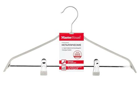 Плечики металлические с противоскользящим бархатистым покрытием, с клипсами для брюк и юбок. Длина 44 см. Металл, ПВХ.
