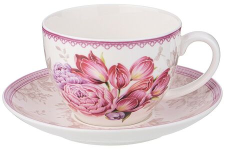 Чайная пара «Тюльпаны» выполнена из фарфора. Материал не впитывает цвет напитков и не деформируется от влаги. Чайная пара благородно и выразительно смотрится на столе, создавая особую атмосферу во время чаепития, поднимая настроение гостям и домочадцам. Она может стать приятным подарком для друга или близкого человека.
