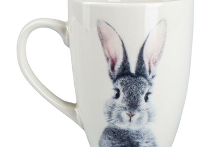 Кружка Пух изготовлена из фарфора и декорирована рисунком кролика. Она подходит для холодных и горячих напитков. Станет прекрасным подарком на праздники.