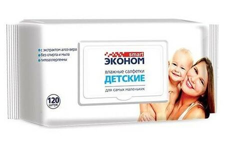 Влажные детские салфетки «Эконом smart» бережно очищают, увлажняют и защищают кожу вашего ребенка, где бы вы ни были – дома, на прогулке, в гостях.