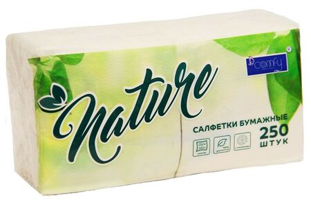 Салфетки бумажные Comfy Nature, 1 слой, 250 шт, 22х22 см доставка