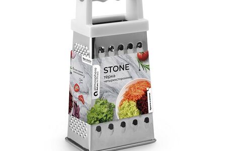 Классическая терка Stone изготовлена из нержавеющей стали. Она имеет самые удобные отверстия по размеру и форме для измельчения продуктов. Терка также снабжена удобной пластиковой ручкой.