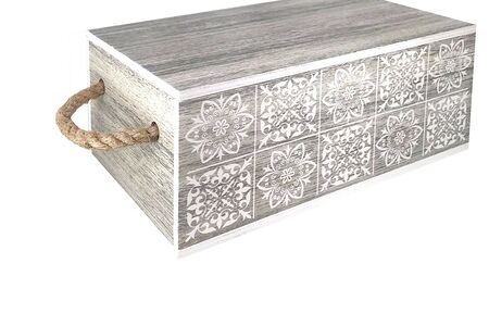 Ящик Орнамент изготовлен из дерева и обладает повышенной влагостойкостью. Он отлично подойдёт для хранения мелочей, вещей, игрушек, а также станет отличным интерьерным декором в вашей квартире. Декорирован рисунком.
