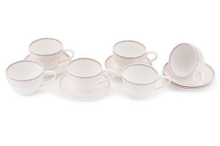 В комплект входят 12 предметов: 6 кружек 315 мл и 6 блюдец 14.5 см .
