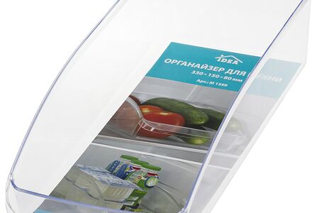 Органайзер для кухни Idea — удобное приспособление для организации порядка в холодильнике, шкафу или выдвижных ящиках. Прозрачный пластик показывает содержимое органайзера. Он снабжен удобной ручкой с хватким выступом. Все края изделия плавно скруглены, что полностью исключает порезы.