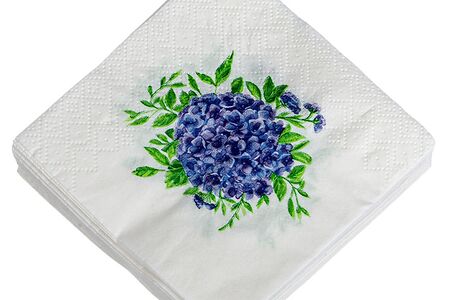 Двухслойные бумажные салфетки Art Bouguet «Голубая гортензия» изготовлены из стопроцентной целлюлозы. Они используются повсеместно: на домашних кухнях кухонные , в ресторанах, столовых столовые , кафетериях, офисах. Бумажные салфетки являются неотъемлемый аксессуаром на кухонном столе.