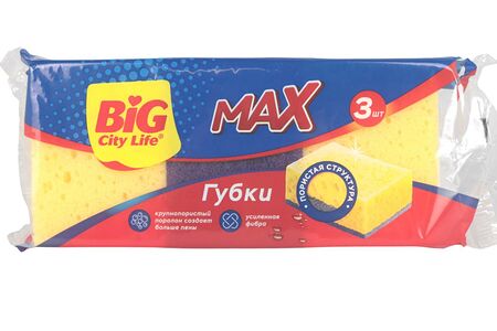 Губка для мытья посуды Big City Life Max, 3 шт, 10х7х3.5 см, крупнопористые доставка