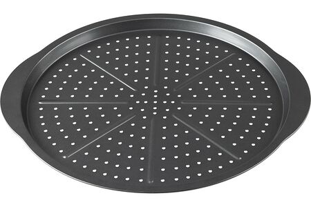 Круглая форма для пиццы Pizza выполнена из углеродистой стали с антипригарным покрытием. Оно предотвращает прилипание теста к поверхности формы, что облегчает его извлечение и сохраняет его форму без повреждений. Изделие снабжено ручками для удобства во время готовки. Перфорированное дно обеспечивает более быстрое и равномерное пропекание теста.