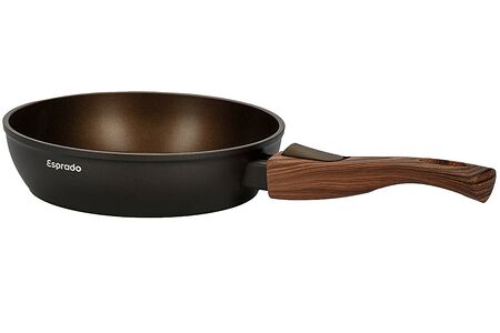 Сковорода Esprado Castana выполнена из кованого алюминия и оборудован двухслойным антипригарным покрытием Whitford Xylan Plus. Съемная ручка изготовлена из бакелита с покрытием soft touch. Сковороду без ручки можно использовать в духовом шкафу при температуре до 230°С. Подходит для всех типов плит, в том числе индукционных.