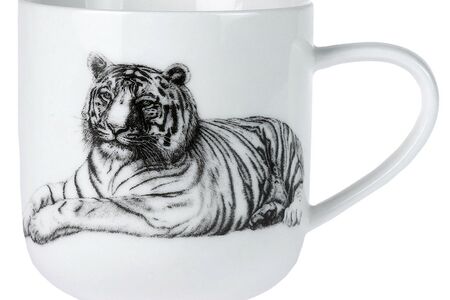 Кружка Tiger выполнена из высококачественного костяного фарфора. Она декорирована контрастным рисунком тигра. Такая кружка будет радовать вас во время чаепития.