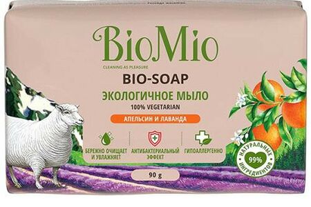 Экологичное туалетное мыло BIO-SOAP с эфирными маслами лаванды, мяты перечной и апельсина - 100 вегетарианское – в его составе не содержатся компоненты животного происхождения. Мыло BioMio гипоаллергенно, благодаря чему отлично подходит для людей с чувствительной кожей. Специальная формула с оливковым маслом и витамином Е обеспечивает бережный уход за кожей, ионы серебра обладают антибактериальным действием, а композиция из эфирных масел лаванды, мяты перечной и апельсина расслабляет и восстанавливает.